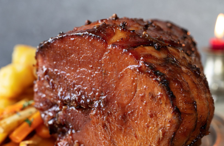 4. In a bowl, mix together the glaze ingredients and stir until the sugar has dissolved. Brush some of the glaze over the ham.