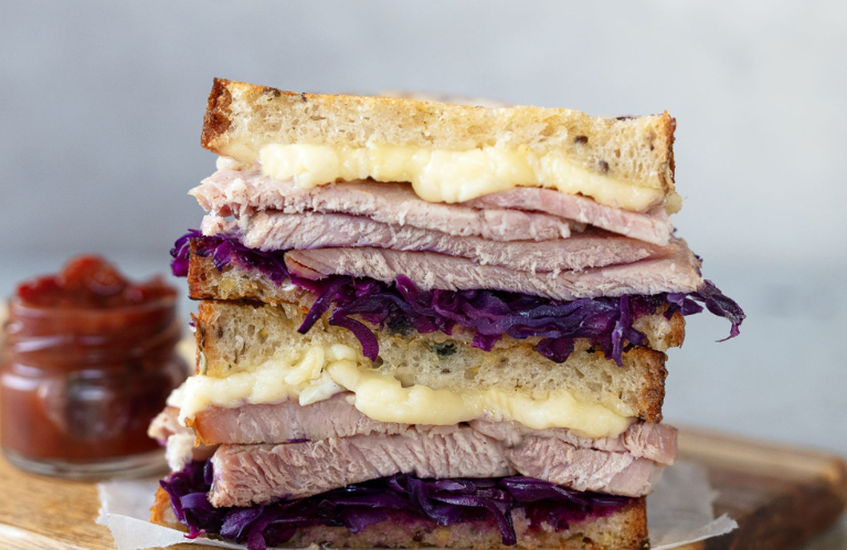 Leftover Ham, Brie and Red Cabbage Toasties