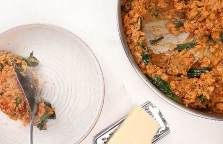 5. Stir in the ricotta, turn off the heat, and stir through the Parmigiano Reggiano and spinach.