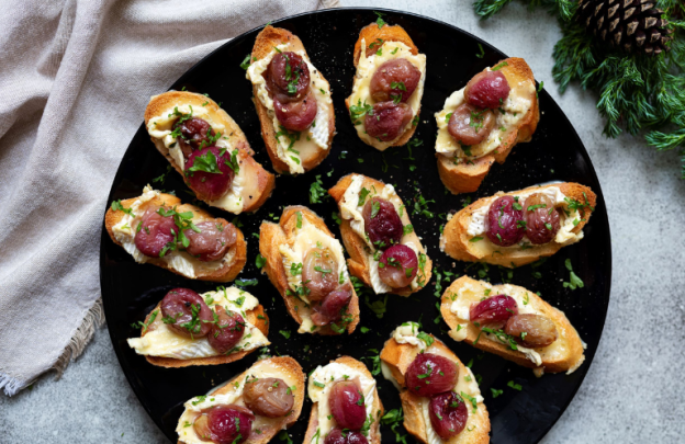 Camembert Crostini with Roasted Grapes