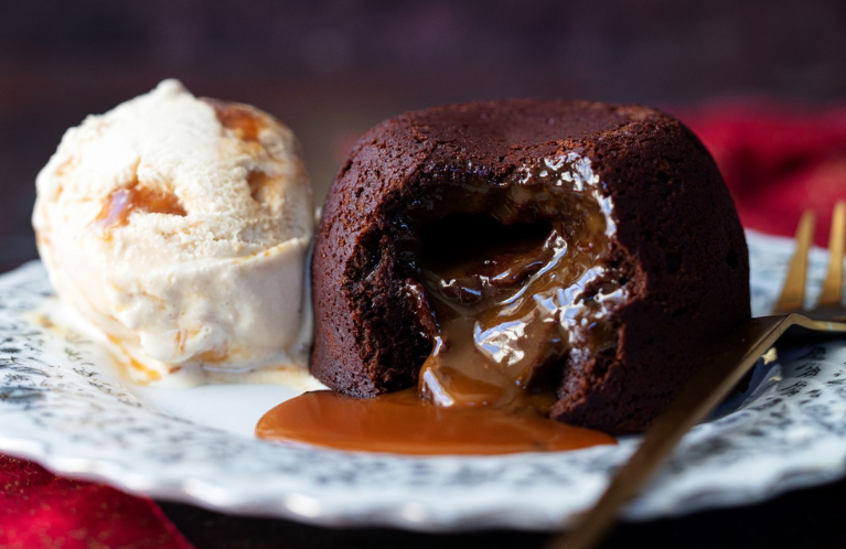 5. Place on a baking tray and bake for 10 minutes. Allow to sit on the counter for one minute, then carefully turn out onto serving plates. Serve immediately with Häagen-Dazs salted caramel ice cream.