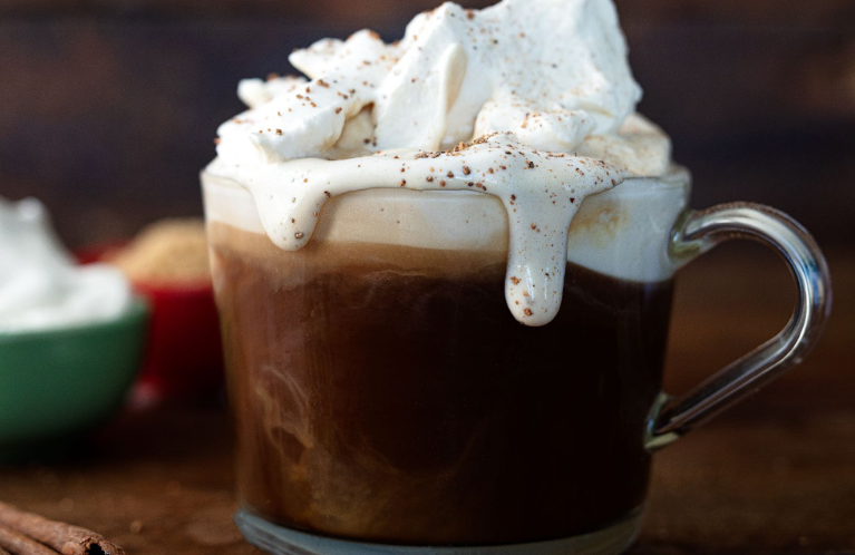 1. Perfect for Christmas morning or after dinner, this coffee is flavoured with cinnamon, nutmeg, cloves and orange is topped with an indulgent layer of whipped cream.